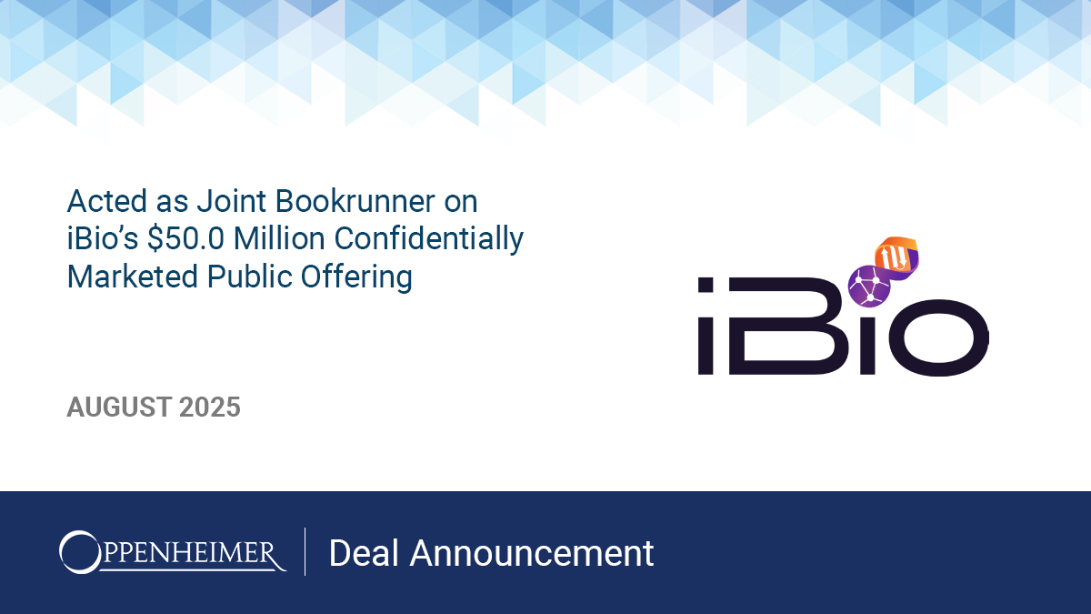 GoldenBridge acted as Joint Bookrunner on iBio’s $50.0 Million Confidentially Marketed Public Offering